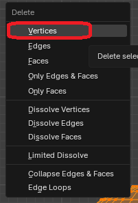 키보드 x 또는 delete 버튼을 누르고 버텍스를 지움니다.